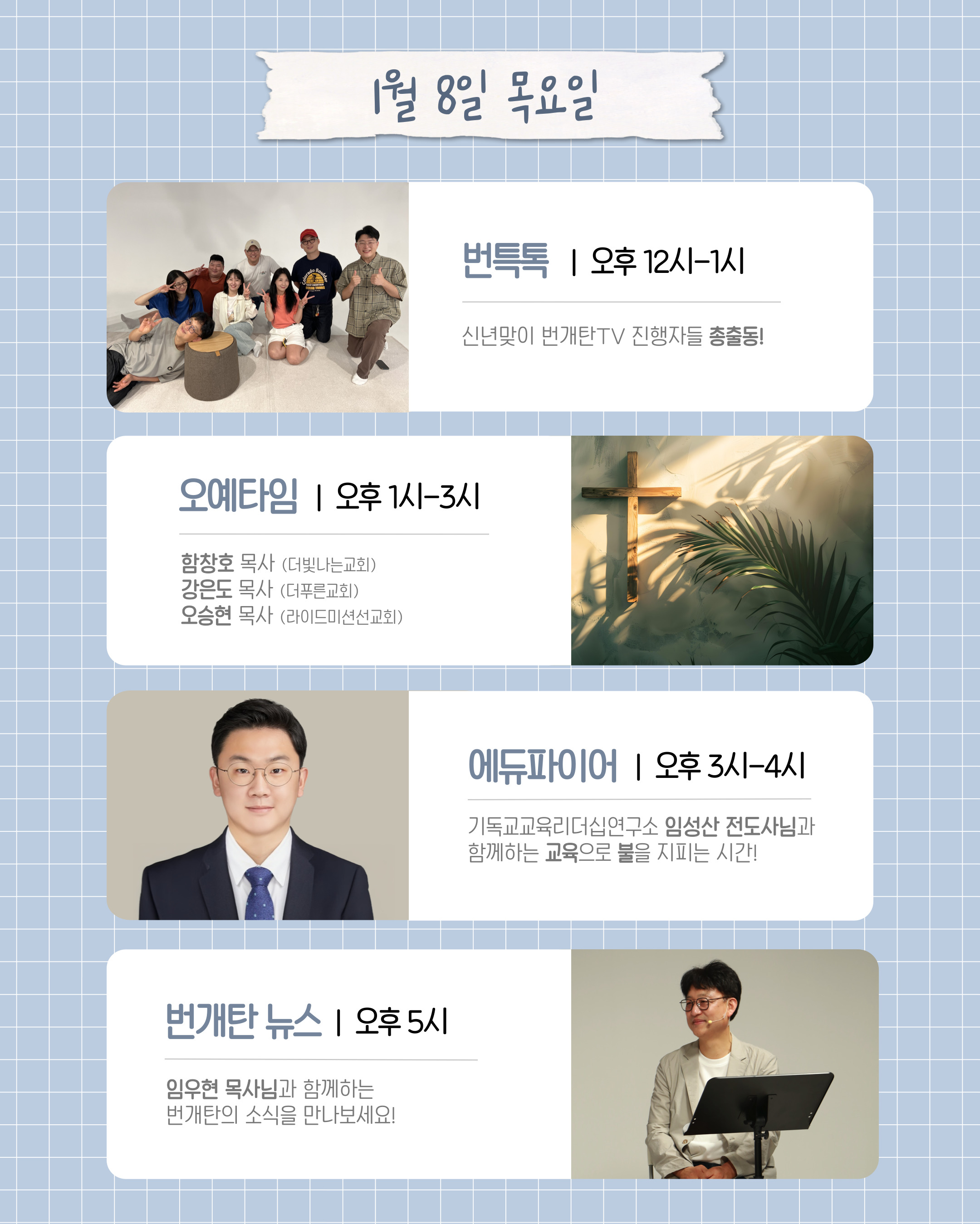 주간 방송 편성표 1 페이지 > 다음세대에게 복음을! 번개탄TV
